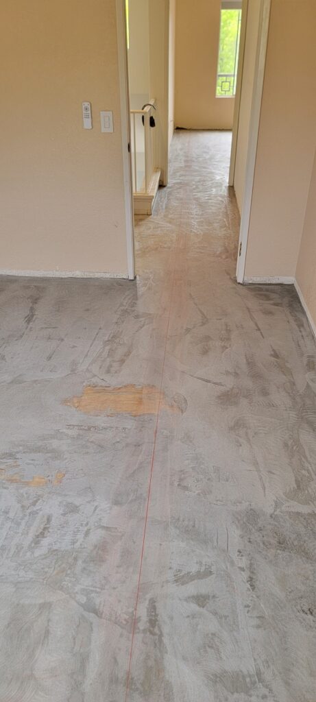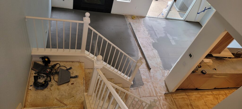 On this particular project we were able to retain the existing tile installed on concrete, which is permitted as long as it’s secure and you grind over it then apply leveler to prepare for the new flooring downstairs.