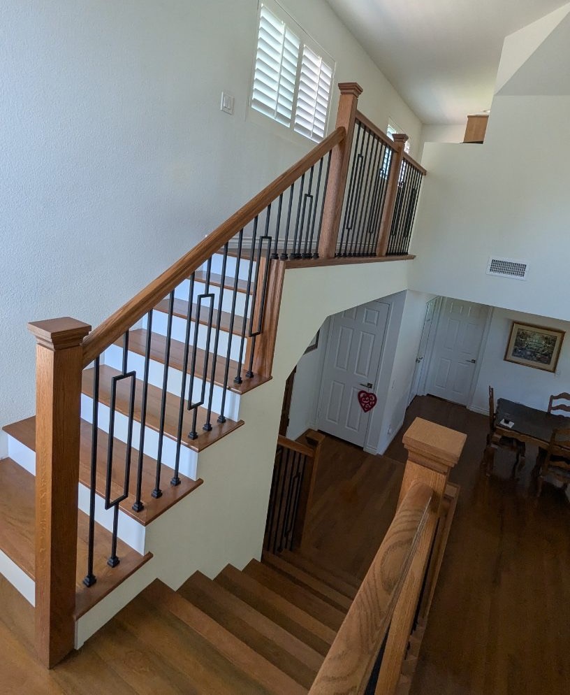 This beautiful Poway home came to us through another great referral from our friends at Beach City Stairs. Their client wanted to remove a partial pony wall to open up the lower staircase and create a more modern, spacious feel.