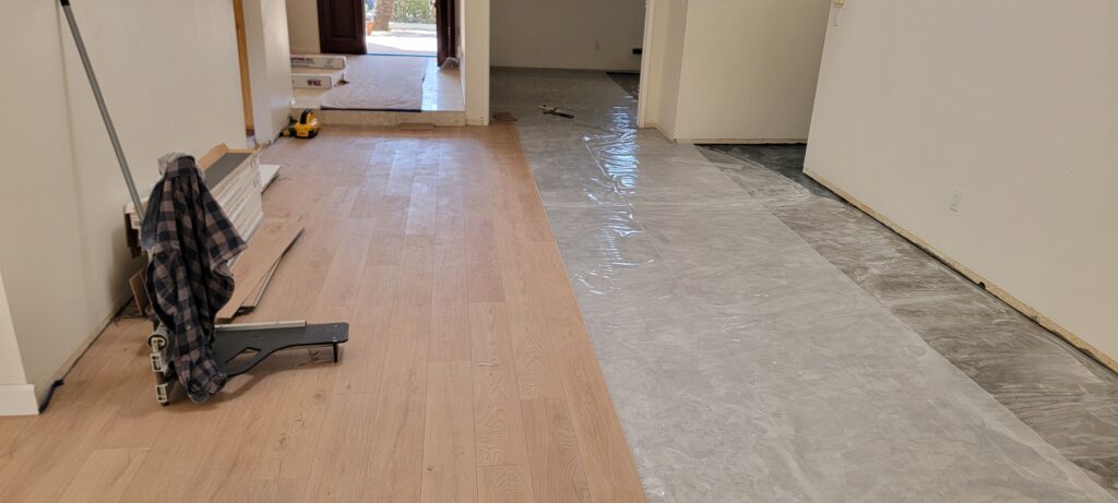 We then applied a premium moisture barrier system and reinforced it with an additional 6-mil plastic underlayment to protect the new flooring from future moisture issues.