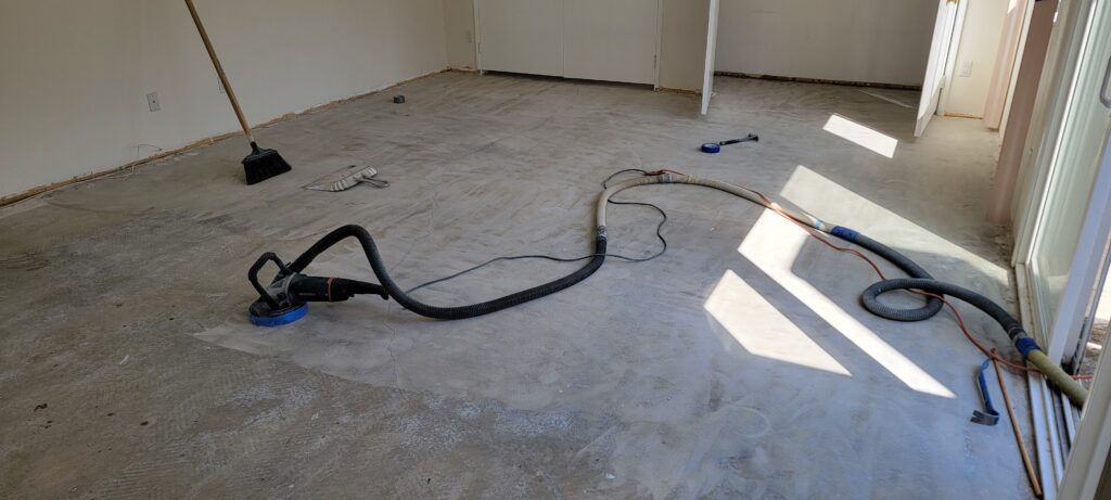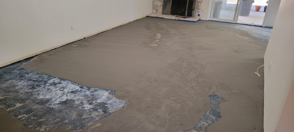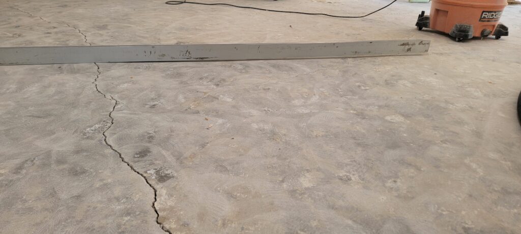 Due to years of moisture intrusion and poor drainage around the home, the concrete slab had experienced substantial settling. This led to major unevenness in the subfloor, which would compromise any new flooring if left untreated.