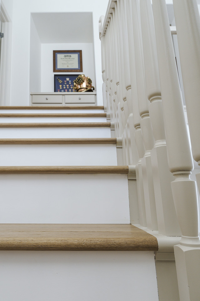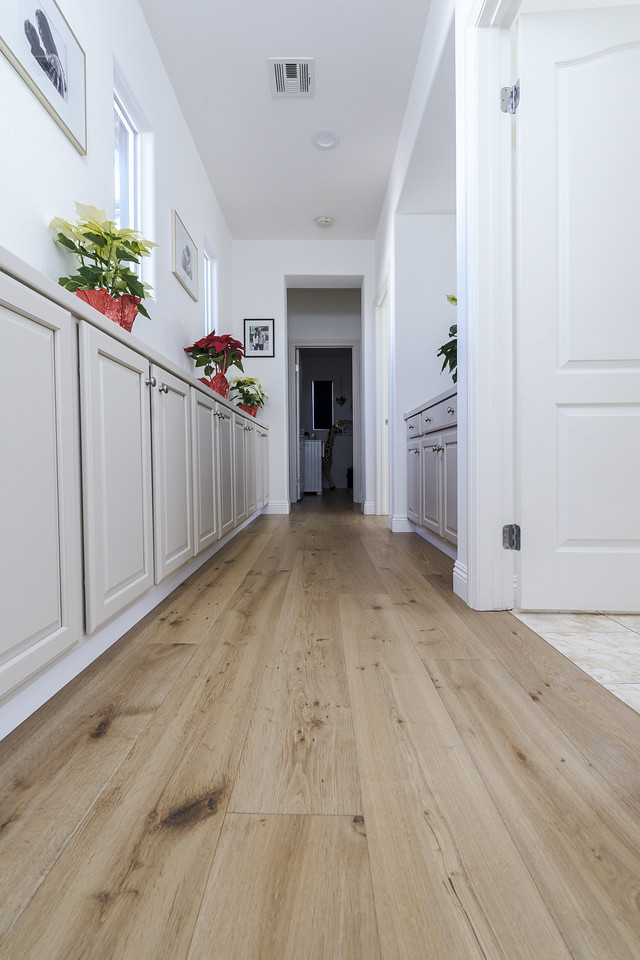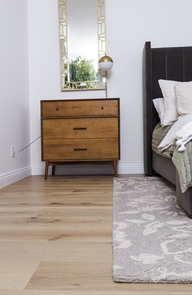 For this project, our clients already had California Classics Mediterranean Hardwood – Mondariz, a stunning light natural color that pairs perfectly with the bright coastal style popular in La Costa homes. They loved the durability and look of this engineered hardwood downstairs and wanted to extend it into: