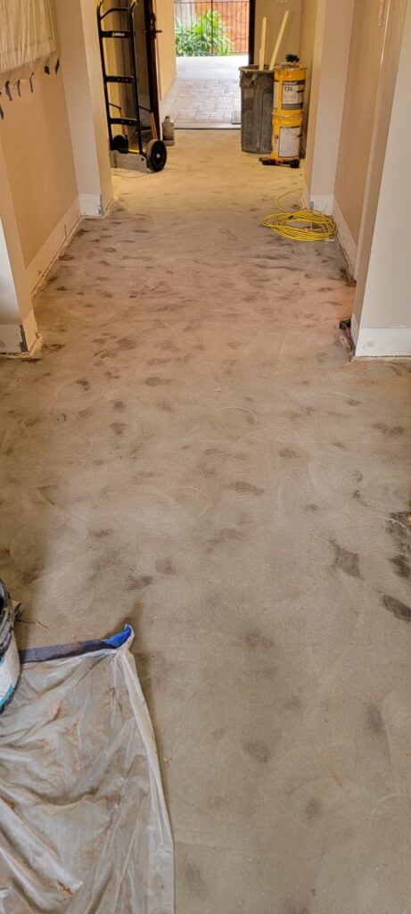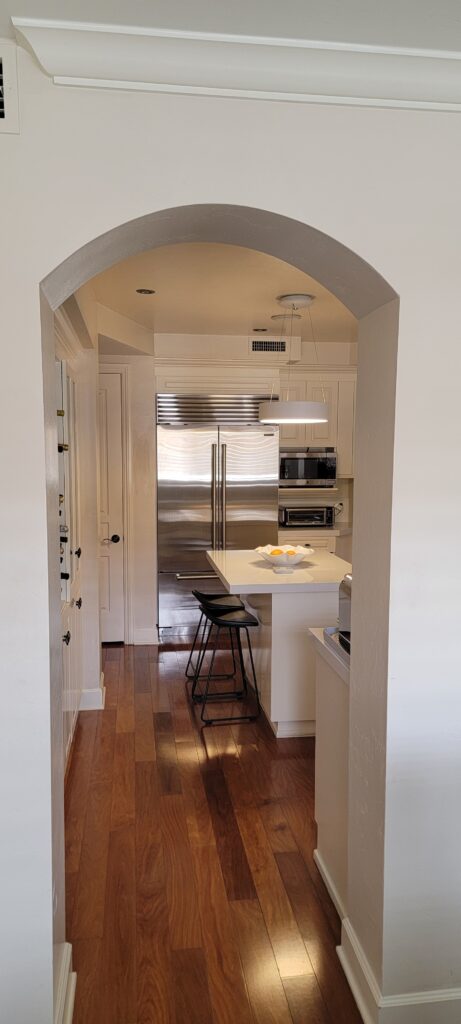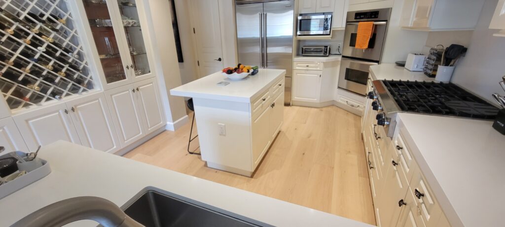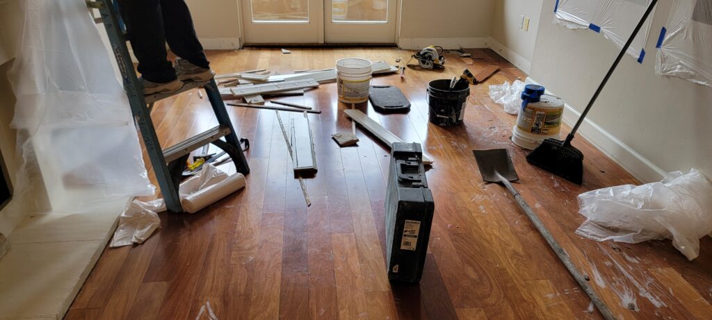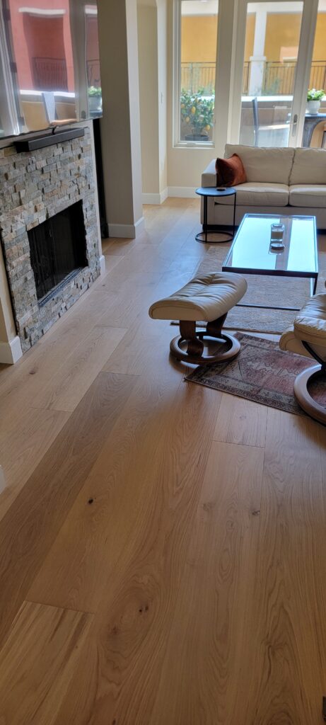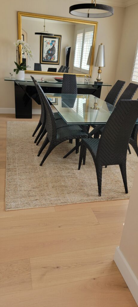 We recently had the pleasure of working on a charming condominium in La Jolla, thanks to a referral from a local flood restoration contracting company. Their client had experienced an unfortunate water leak that came in through the patio, damaging the existing dark mahogany hardwood flooring.