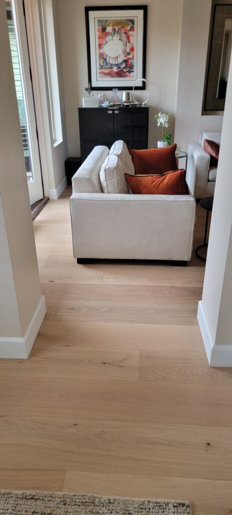 They ultimately chose the Ravenna color from the elegant Urbano hardwood collection. The soft, natural tones of this flooring completely transformed the condo, making it feel more spacious and full of light. It was one of those moments where the product and the space just clicked, and the result looked like it had always belonged there.